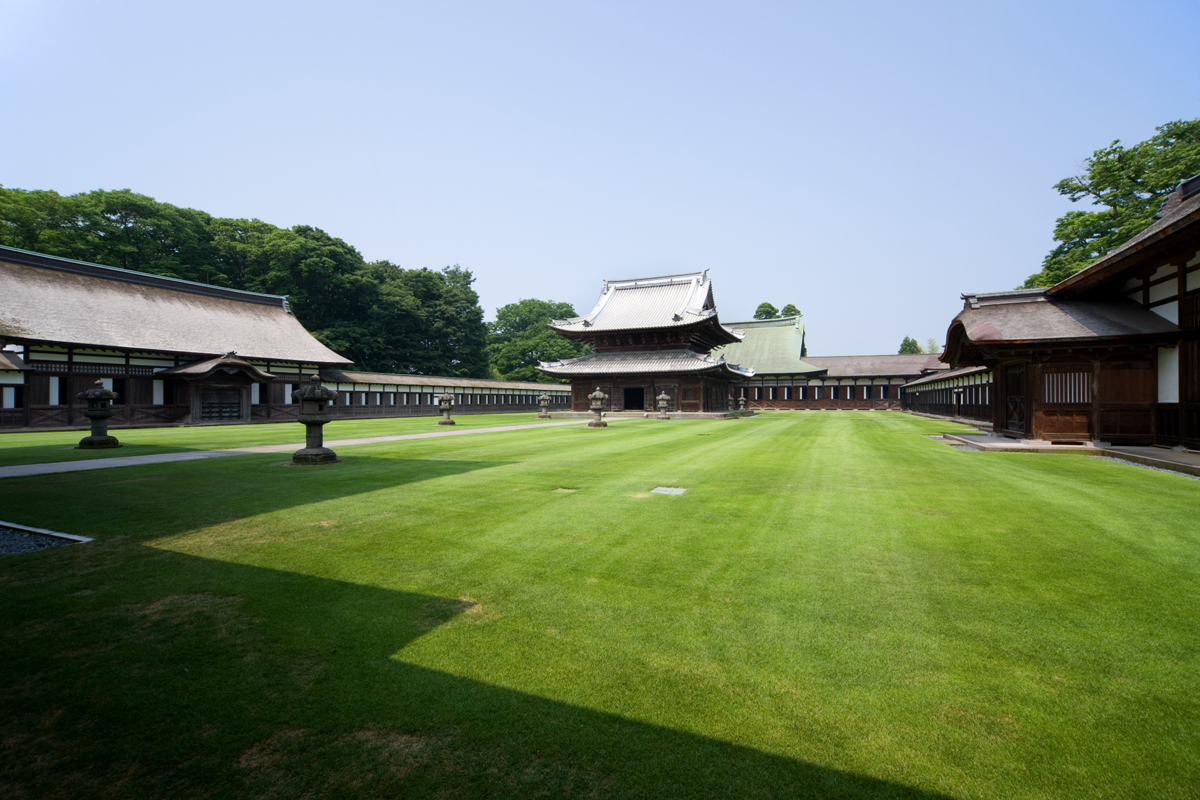 国宝、高岡山 瑞龍寺(たかおかさんずいりゅうじ)の壮大な伽藍配置様式の豪壮にして典雅な美しさに圧倒されます。加賀藩百二十万石の財力を如実に示す江戸初期の典型的な建造物です。高岡の開祖前田利長の菩提寺、曹洞宗の名刹です。3代藩主前田利常の建立で、1997年に山門、仏殿、法堂が建造物として国宝に指定されています。また総門、禅堂、大庫裏、大茶堂、回廊三棟が重要文化財として指定されており、江戸初期の禅宗寺院建築として高く評価されています。